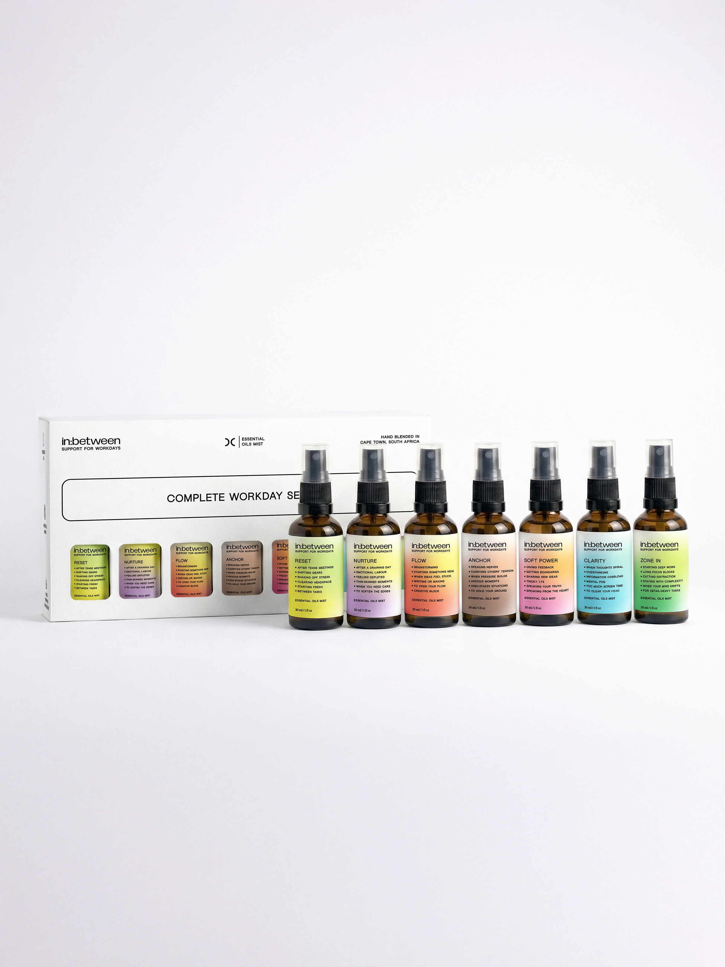 The full collection of 30ml bottles, designed to meet the shifting pace, pressure, and possibility of a real workday.